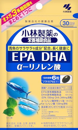 小林製薬の栄養補助食品 サプリメント EPA DHA α- リノレン酸 【 オメガ3脂肪酸 をまとめて一つに! 魚由来のサラサラ成分配合 】オメガ3 サプリ [ 栄養補助食品 / 180粒 / 30日分 ]