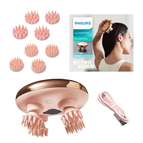 フィリップス ヘッドスパ 電動頭皮ブラシ スカルプ 頭皮ケア IP67防水 軽量 小型 635nm赤色光ケア 3段階速度調整 コードレス ピンク FTM3101H