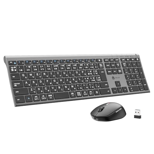iClever キーボード マウスセット ワイヤレス Bluetooth&2.4G JIS日本語配列 フルサイズ テンキー付き マウス4段調節可能DPI 静音 薄型 軽量 無線 Type-C充電式 パンタグラフ式 デュアルモード パソコンPC Windows/Mac対応 DK03 Combo (グレーブラック)