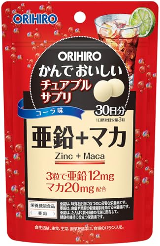 かんでおいしいチュアブルサプリ 亜鉛+マカ 90粒 栄養機能食品 亜鉛配合 コーラ味 おいしい チュアブル 男性 サプリメント 日本製 活力 健康維持 エネルギーサポート オリヒロ