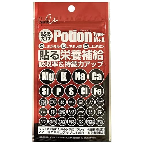【スポーツステッカー付き】貼るだけ Potion Type M+A ボディ用トリートメントパック PAD0005 18枚 6枚×3シート 9種のミネラル 13種のアミノ酸 5種のビタミン 貼る栄養補給 吸収率&持続力アップ 運動後の疲れた体のケアに 運動中の栄養補給に 就寝時も栄養補給 日本製 パルード