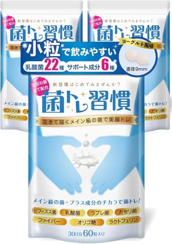 菌トレ習慣 乳酸菌 ビフィズス菌 ラクトフェリン オリゴ糖 イヌリン 乳酸菌生産物質 サプリメント タブレット 【医師監修】【ヨーグルト味】 3個セット