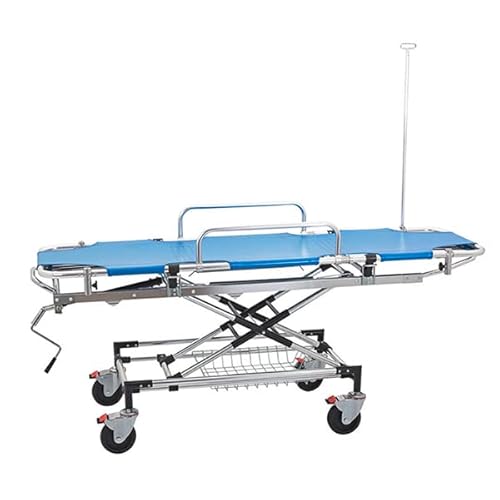 高機能ストレッチャー (点滴棒付) ブルー 診察台 ストレッチャー 介護 担架 ※国内メーカー監修 5年保証付 タンカ 応急処置 寝台 簡易ベッド Buyers Selection