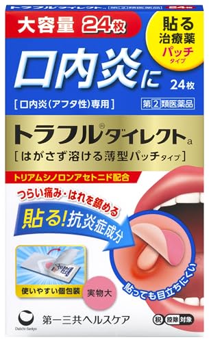 - 口内炎で食事がしみる場合は、物理的に保護できる「トラフルダイレクトa」のようなパッチ型が最適です。