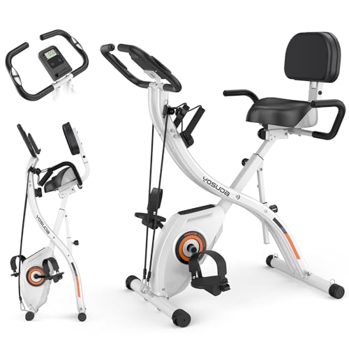 YOSUDA フィットネスバイク 静音 16段階負荷調節 エアロバイク 家庭用 組み立て簡単 マグネット式 背もたれ コンパクト収納 軽量 折りたたみ トレーニングバイク 室内バイク XB002