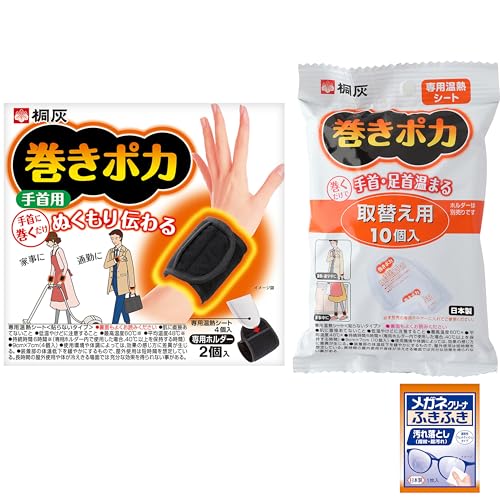 【Amazon.co.jp限定】巻きポカ 桐灰化学 手首用 手首から指先までぬくもりが拡がる 手首ウォーマー 本体1個+替え1個 桐灰 メガネクリーナおまけ付