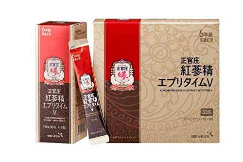 正官庄(ジョンガンジャン) 紅参精エブリタイムV(バリュー) 高麗人参 サプリ 朝鮮人参 韓国産 6年根 濃縮エキス 100% 1包1,000mg 紅参(ホンサム) ginseng 国内正規品 10ml×33包